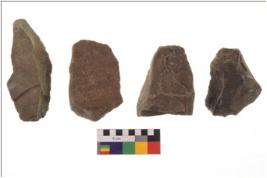 | Description / विवरण | There are n 4 flakes; there are multidirectional irregular scar pattern on them; made of short flakes and all four have blunted edges. |