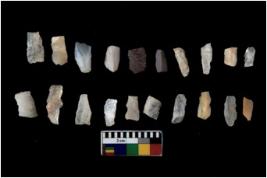 | Description / विवरण | There are n 20 flakes tool; there are multidirectional irregular scar pattern on them, made of short flakes and few have tapering edges. |