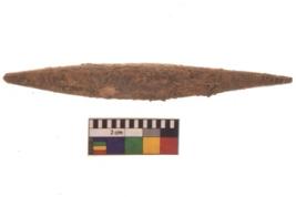| Description / विवरण | Specimen of a polished bone point made on long bone, it has shape pointed both side. |