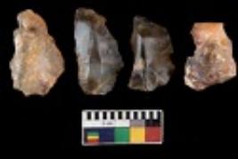 | Description / विवरण | There are n 4 utilized flake cores. There are multi directional irregular scar pattern on them. Three are tapering at one end and one has sharp edge. |