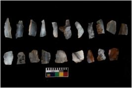 | Description / विवरण | There are n 20 blades. They show variation in size and shape, all are blunted blades edges, a few are tapered edges, points, some are sharp edges, one has hole edge, trapezes, triangles,square, at one end. |