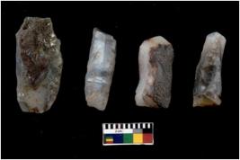 | Description / विवरण | Specimen of a cores with several broad fluted marks, the reverse bulb and platform can be seen. |