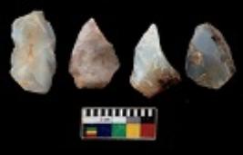 | Description / विवरण | There are n 4 utilized flake cores. There are multi directional irregular scar pattern on them. One is tapering at one end and three have blunted edges. |