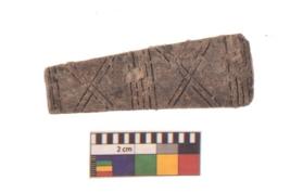 | Description / विवरण | Specimen of a bone point made on long bone, it is rectangular cross section in shape with flat and thick body.It have double X s scratched on the exterior. |