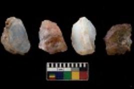 | Description / विवरण | There are n 4 utilized flake cores. There are multi directional irregular scar pattern on them. Two are tapering at one end and two have blunted edges. |