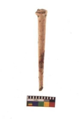 | Description / विवरण | Specimen of a polished bone point made on long bone, it has a sharp point. |
