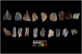 | Description / विवरण | There are n 20 blades. They show variation in size and shape, all are blunted blades edges, a few are tapered edges, two are pen pointed edges, one has hole edges, points, two are rounded edges, some are sharp edges. trapezes, rounded, square, at one end. |
