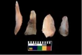 | Description / विवरण | There are n 4 utilized flake cores. There are multi directional irregular scar pattern on them. All of them are tapering at one end. |