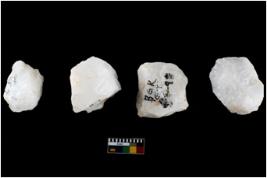 | Description / विवरण | Specimen of fluted cores having several broad fluted marks indicating the detached blades from it. |