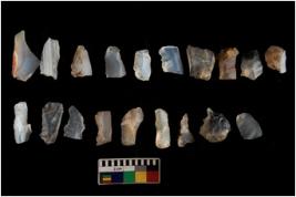 | Description / विवरण | There are n 20 blades. They show variation in size and shape. some of them are blunted edges, a few are pen pointed, a few are tapered edges, a few are sharp edges, points, retouches, square, triangles, one has vertical line edge, and truncated blades, at one end. |