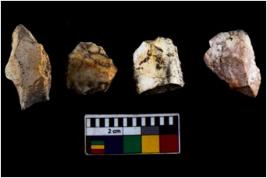 | Description / विवरण | There are n 04 objects; two of them have flat base, two are fluted cores, thin lines are visible, one is tapering at one end. |