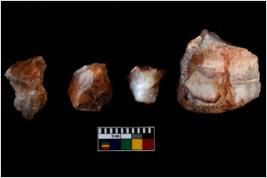 | Description / विवरण | There are n 4 utilized flake cores. There are multidirectional irregular scar pattern on both dorsal and ventral face of the flake cores. One has sharp edges and three have blunted edges. |