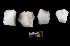 | Description / विवरण | Specimen of fluted cores having several broad fluted marks indicating the detached blades from it. |