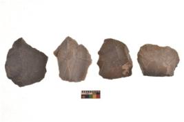| Description / विवरण | There are n 4 cores; there are multidirectional irregular scar pattern on them. The reverse bulb and platform can be seen. |