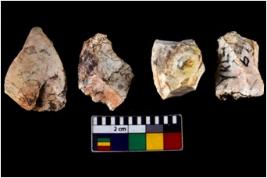 | Description / विवरण | There are n 04 objects; among them three are having flat base, retouched shape is visible, thin lines are noticed, one is tapering at one end. |
