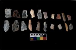 | Description / विवरण | There are n 20 Flake tool; There are multidirectional irregular scar pattern on them. few have blunt edges, Some of them are tapering at one end. |