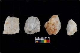 | Description / विवरण | Specimen of cores with several broad fluted marks and some of them are tapering at one end. |