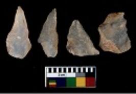 | Description / विवरण | There are n 4 utilized flake cores. There are multi directional irregular scar pattern on them. Three are tapering at one end and one has sharp edge. |