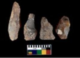 | Description / विवरण | There are n 4 utilized flake cores. There are multi directional irregular scar pattern on them. All of them are tapering at one end. |