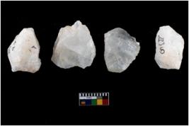 | Description / विवरण | Specimen of fluted cores having several broad fluted marks indicating the detached blades from it. |