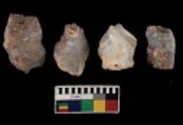 | Description / विवरण | There are n 4 utilized flake cores. Out of them one is made up of Chert and three are made up of Chalcedony. There are multi directional irregular scar pattern on them. Three are tapering at one end and one has sharp edge. |