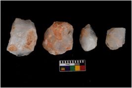 | Description / विवरण | Specimen of a cores with several broad fluted marks and some of them are tapering at one end. |
