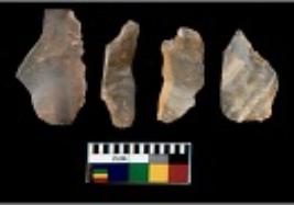 | Description / विवरण | There are n 4 utilized flake cores. There are multi directional irregular scar pattern on them. All of them are tapering at one end. |