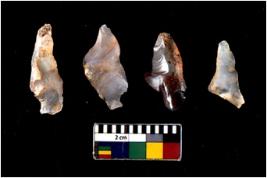 | Description / विवरण | There are n 4 cores. There are multi directional irregular scar pattern on both dorsal and ventral face of the cores. Some have blunted edges and some have round edges. |
