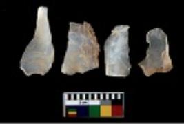 | Description / विवरण | There are n 4 utilized flake cores. There are multi directional irregular scar pattern on them. All of them are tapering at one end. |