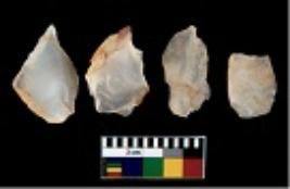 | Description / विवरण | There are n 4 utilized flake cores. There are multi directional irregular scar pattern on them. Two are tapering at one end and two have sharp edges. |