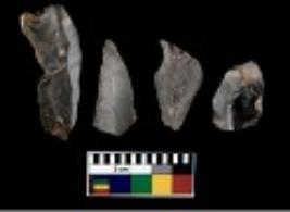 | Description / विवरण | There are n 4 utilized flake cores. Out of them three are made up of Chalcedony and one is made up of Chert. There are multi directional irregular scar pattern on them. Two are tapering at one end and two have sharp edges. |