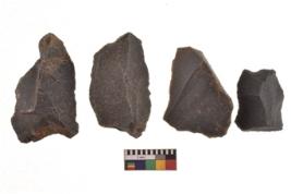 | Description / विवरण | There are n 4 cores; there are multidirectional irregular scar pattern on them. The reverse bulb and platform can be seen. |