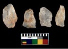 | Description / विवरण | There are n 4 utilized flake cores. There are multi directional irregular scar pattern on them. Two are tapering at one end and two have blunted edges. |