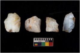 | Description / विवरण | Specimen of a cores with several broad fluted marks and some of them are tapering at one end. |