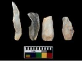 | Description / विवरण | There are n 4 utilized flake cores. There are multi directional irregular scar pattern on them. Three are tapering at one end and one has sharp edge. |