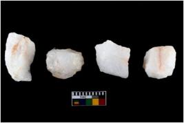 | Description / विवरण | Specimen of fluted cores having several broad fluted marks indicating the detached blades from it. |