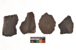 | Description / विवरण | There are n 4 cores; there are multidirectional irregular scar pattern on them. The reverse bulb and platform can be seen. |
