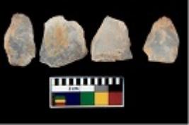 | Description / विवरण | There are n 4 utilized flake cores. There are multi directional irregular scar pattern on them. Three have blunted edges and one has round edge. |