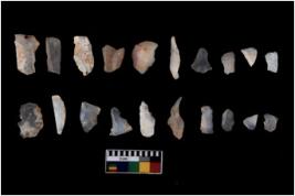 | Description / विवरण | There are n 20 flakes tool; there are multidirectional irregular scar pattern on them; made of short flakes and few have tapering edges. |