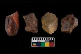 | Description / विवरण | There are n 04 objects; among them one is fluted core, all are sharp, blade removing marks rae visible. Three of them have flat surface. |