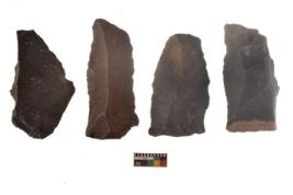 | Description / विवरण | There are n 4 cores; there are multidirectional irregular scar pattern on them. The reverse bulb and platform can be seen. |
