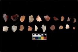 | Description / विवरण | Specimen of flakes Chips with prominent flaking marks. It made up of a short flakes with sides trimmed. |