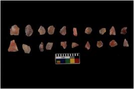 | Description / विवरण | Specimen of flakes Chips with prominent flaking marks. It made up of a short flakes with sides trimmed. |