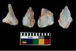 | Description / विवरण | There are n 4 utilized flake cores. There are multi directional irregular scar pattern on them. Three are tapering at one end and one has sharp edge. |