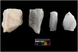 | Description / विवरण | A specimen of a fluted core having several broad fluted marks indicating the detached blades from it |