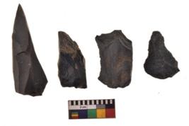| Description / विवरण | There are n 4 cores; there are multidirectional irregular scar pattern on them. The reverse bulb and platform can be seen. |