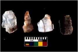 | Description / विवरण | There are n-4 of utilized flake cores. There are multidirectional irregular dominant scar pattern on both dorsal and ventral face of the cores. |