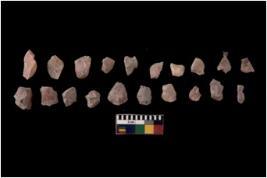 | Description / विवरण | Specimen of flakes Chips with prominent flaking marks. It made up of a short flakes with sides trimmed. |
