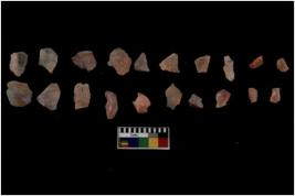 | Description / विवरण | Specimen of flakes Chips with prominent flaking marks. It made up of a short flakes with sides trimmed. |