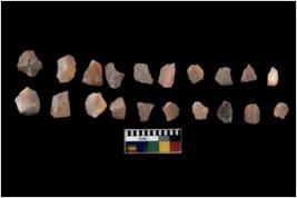 | Description / विवरण | Specimen of flakes Chips with prominent flaking marks. It made up of a short flakes with sides trimmed. |